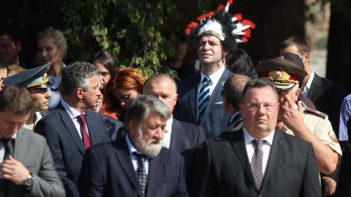 През 2015 година мъж нахлузи шапка с индиански пера на главата си по време на тържествена церемония по издигането на знамето на София. По-късно беше изведен от полицията. Обяснил, че сложил перата, защото го правили на индианец. Мъжът с перата е бившият общински съветник от СДС през 1995 година и кандидат-депутат на РЗС от Ямбол Николай Гацев.