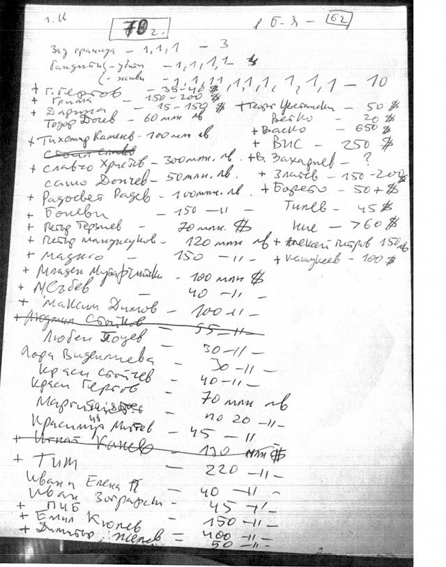 В качеството на обвиняеми са привлечени още трима за данъчни престъпления, по отношение на тях са определени парични гаранции според тяхното семейно и имуществено положение. На над 40 адреса са извършени разследвания, иззети са документи, договори, пълномощни, луксозни автомобили, ценни вещи. В жилището на А. Б. е иззета цветна снимка, на която са изписани на гърба й имена на публични личности, някои убити през годините, срещу имената на всеки от тях са записани големи суми пари от порядъка на 70 млн. долара, 100 млн. лева, 120 млн. лева, 300 млн. лева.