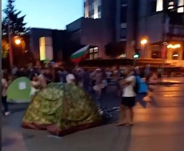 Протестиращите пак опънаха палатките на кръстовището пред сградата на община Варна