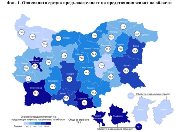 Средната продължителност на живота в областта е с 0.9 години по-висока от средната за страната - 74.9 години.